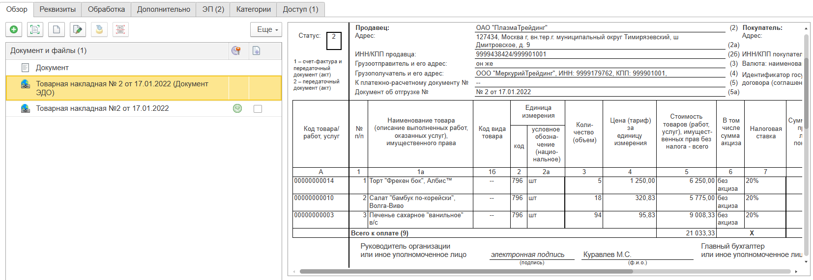 Юридически значимый обмен с контрагентами через ЭДО (Диадок, Такском и др.)