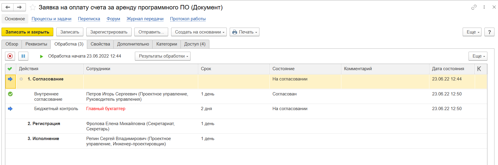 - Последовательность этапов: Четкий алгоритм движения документа, определяющий исполнителей, их роли (инициатор, согласующий, исполнитель, ознакомленный) и порядок действий. Система может реализовывать как линейные, так и сложные ветвящиеся маршруты (например, «если сумма договора более 1 млн руб., направить на согласование финансовому директору»).