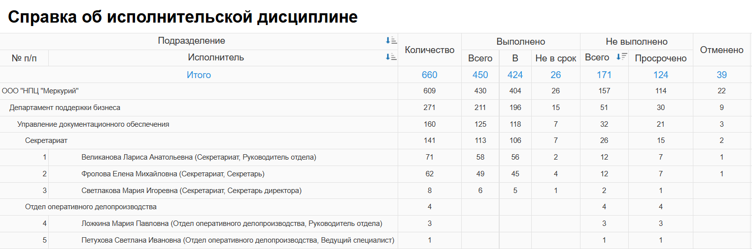Система автоматически фиксирует все действия и формирует объективные отчеты и рейтинги по исполнительности сотрудников и отделов. Эти данные становятся основой для системы мотивации и принятия кадровых решений, основанных на фактах, а не на субъективных ощущениях.