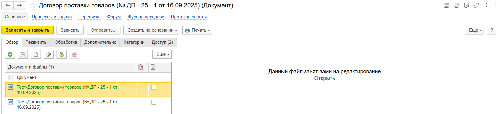 Сотрудники могут работают в привычных MS Word и Excel, но при этом все изменения сохраняются прямо в карточке документа в 1С. Отображается, если документ редактируется и кем именно. Сохраняется вся история изменений, а сам документ продолжает движение по настроенному маршруту согласования. Пользовательский опыт не меняется, но управляемость и контроль достигают нового уровня.