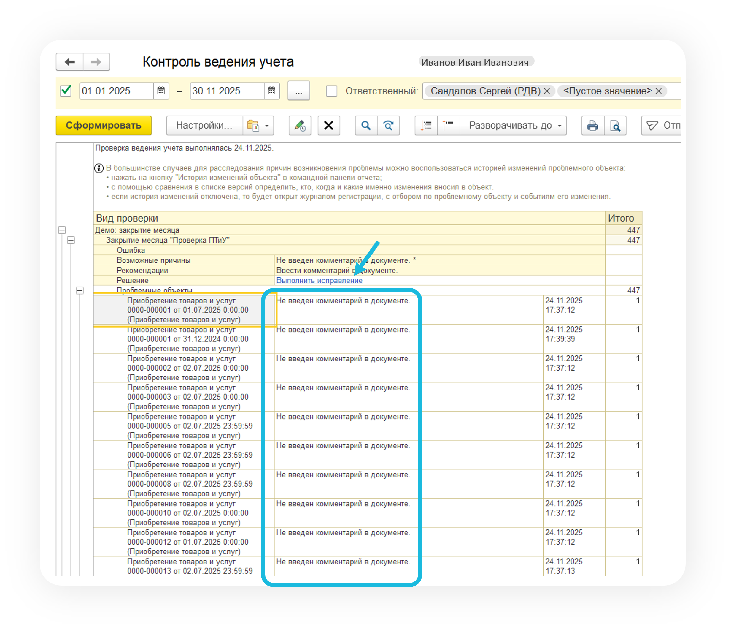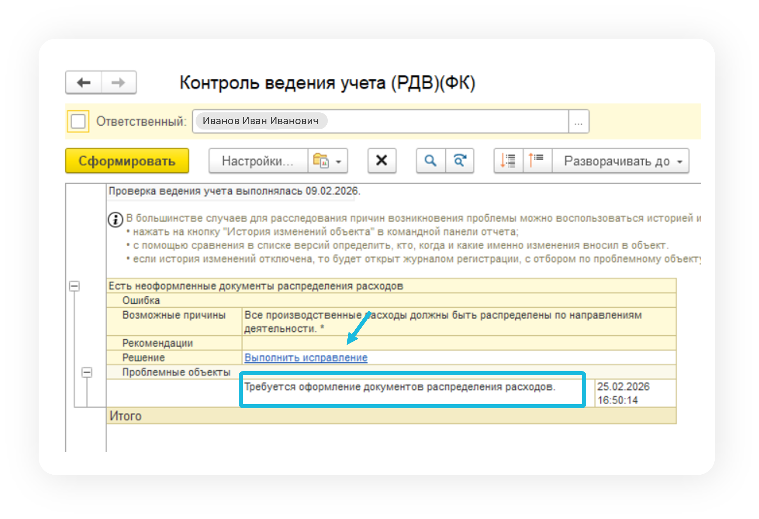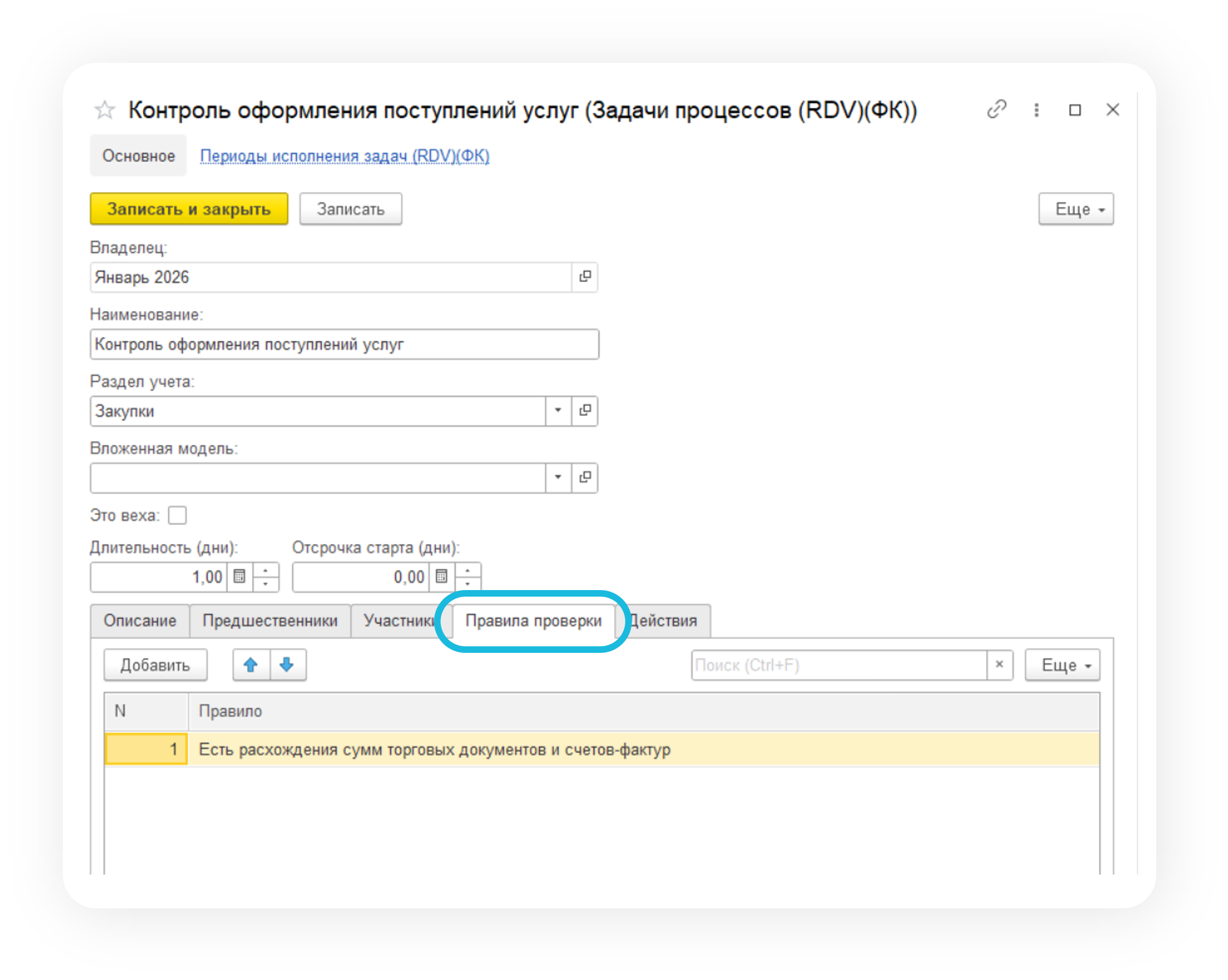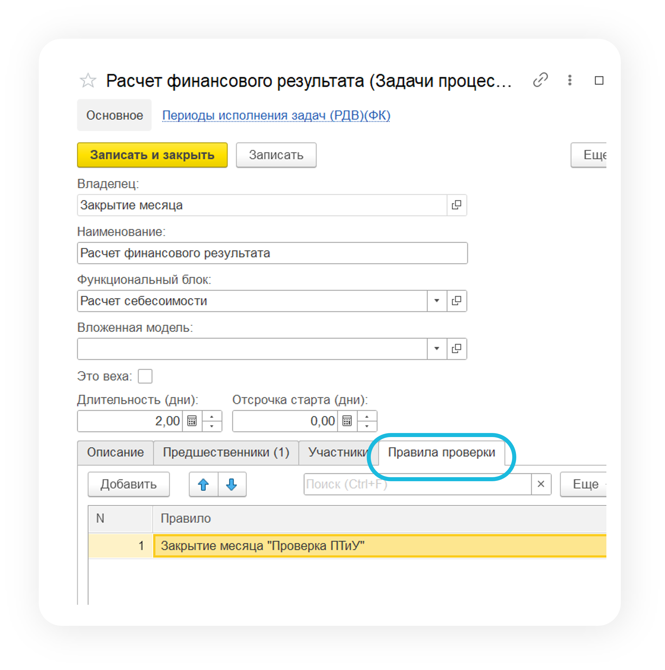 Настраиваются автоматические контрольные процедуры и необходимые правила, отчеты для своевременной проверки корректности выполнения процесса закрытия периода