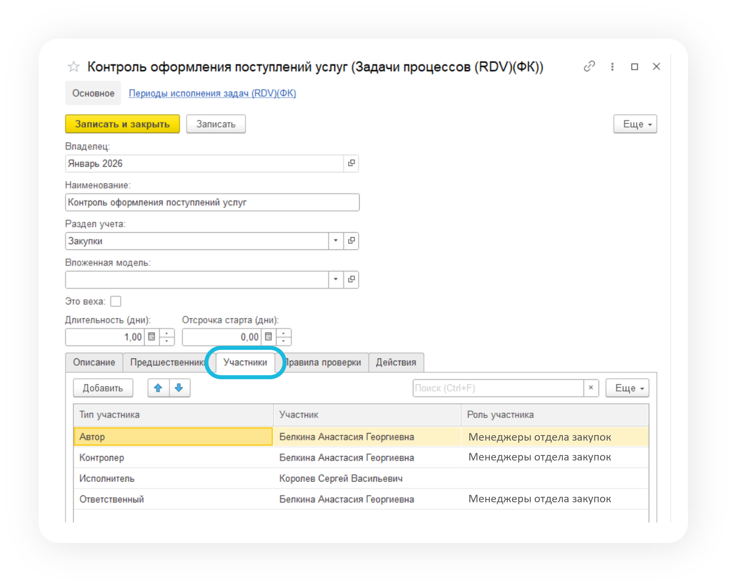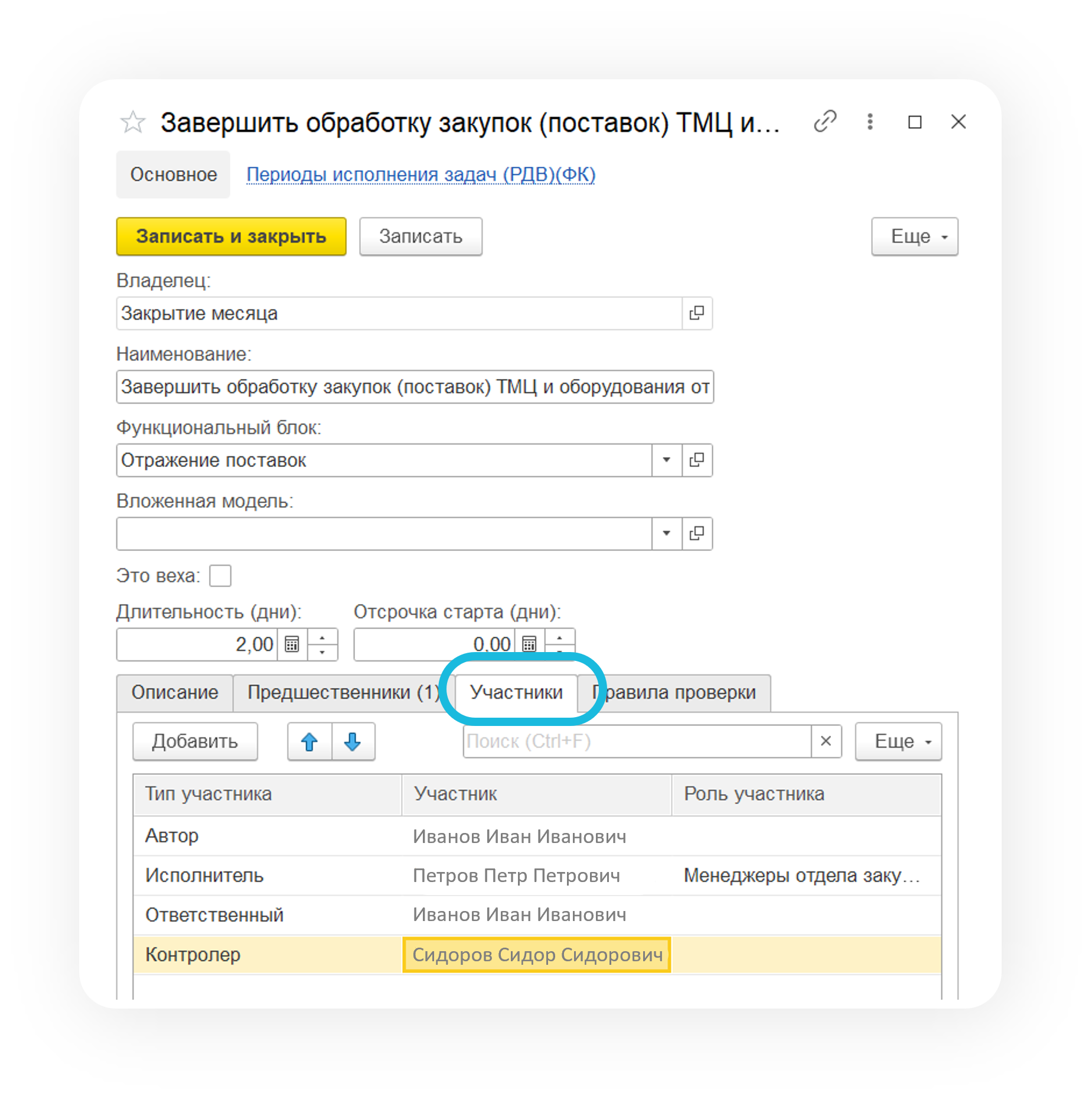 Устанавливаем сроки и распределяем ответственных по операциям закрытия периода, расчета себестоимости и формирования отчетности